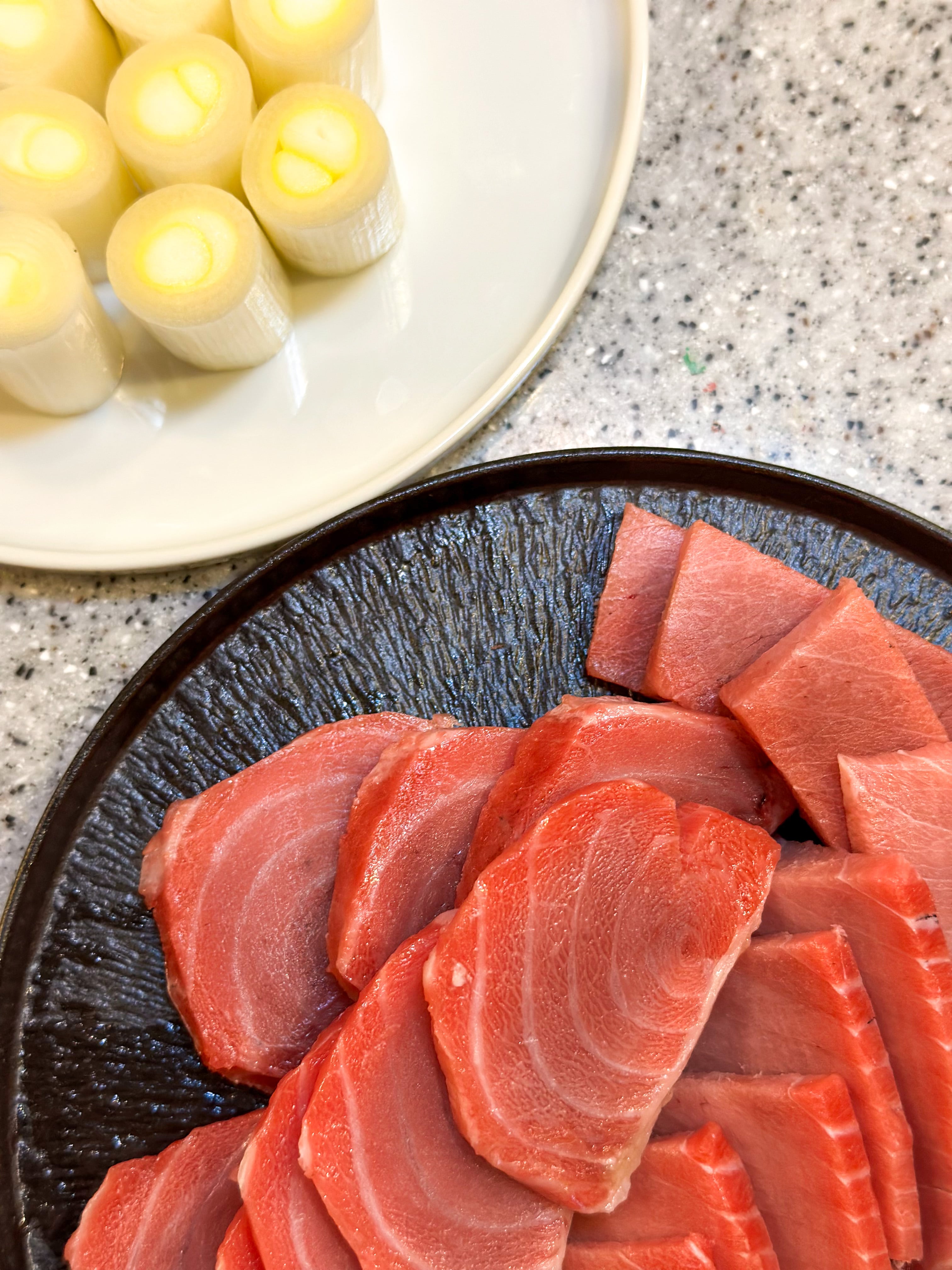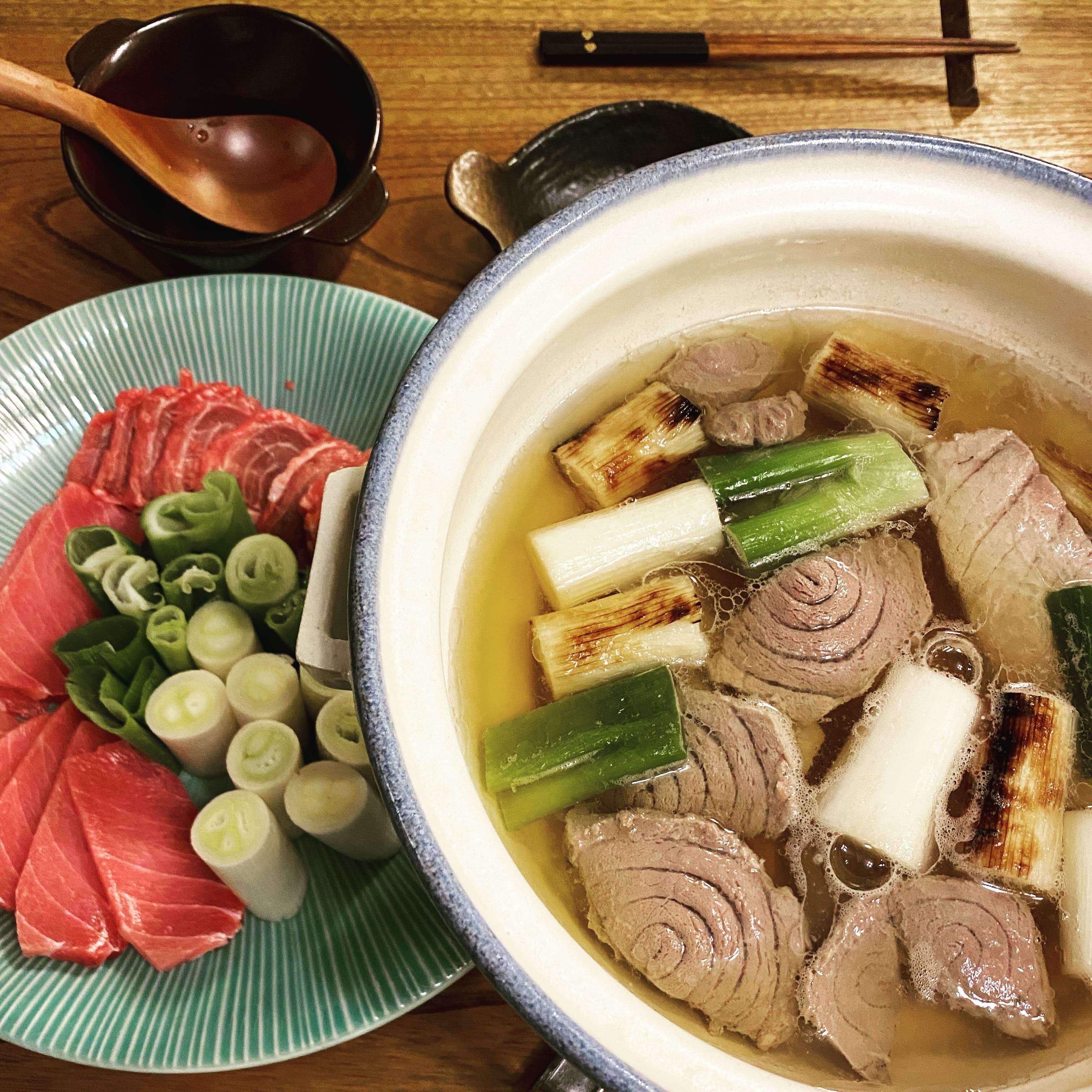 【12/27(土)出荷】ねぎま鍋セット(2~3人前) 鮪マグロ(脳天+ハラモ)+小山屋醤油店だしつゆ+葱善「江戸千住葱」セット 海鮮鍋